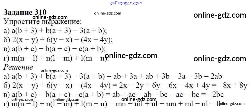 Готовые домашние задания по Алгебре за 7 класс Учебник Дорофеев, Суворова Академический школьный учебник 2020 - Упражнения 310