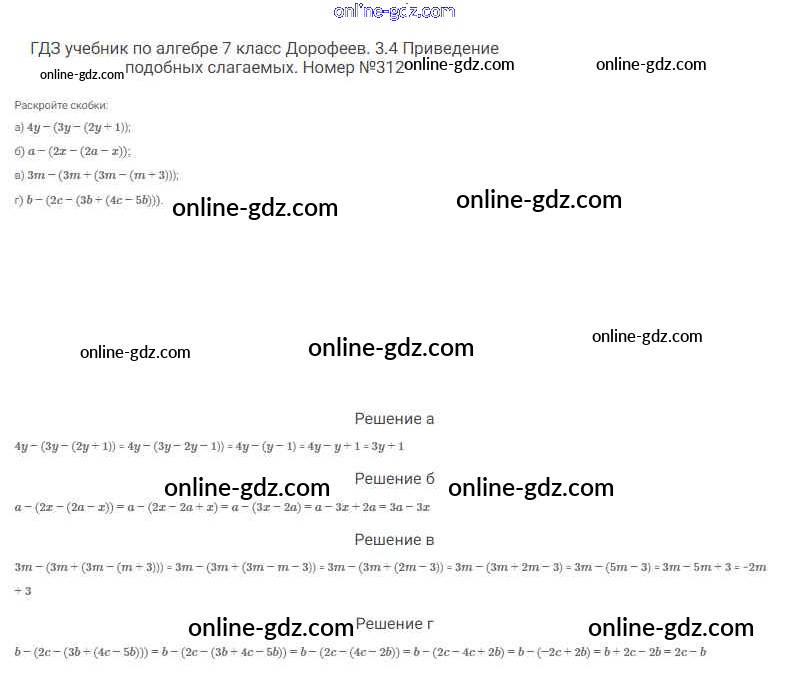Готовые домашние задания по Алгебре за 7 класс Учебник Дорофеев, Суворова Академический школьный учебник 2020 - Упражнения 312