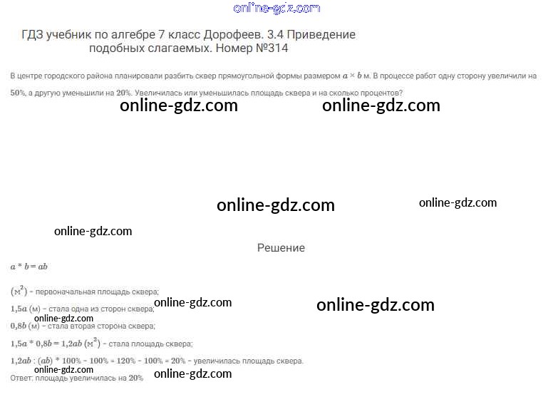 Готовые домашние задания по Алгебре за 7 класс Учебник Дорофеев, Суворова Академический школьный учебник 2020 - Упражнения 314