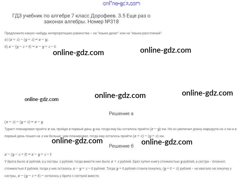 Готовые домашние задания по Алгебре за 7 класс Учебник Дорофеев, Суворова Академический школьный учебник 2020 - Упражнения 318