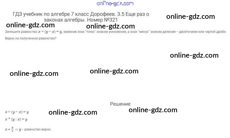 Готовые домашние задания по Алгебре за 7 класс Учебник Дорофеев, Суворова Академический школьный учебник 2020 - Упражнения 321