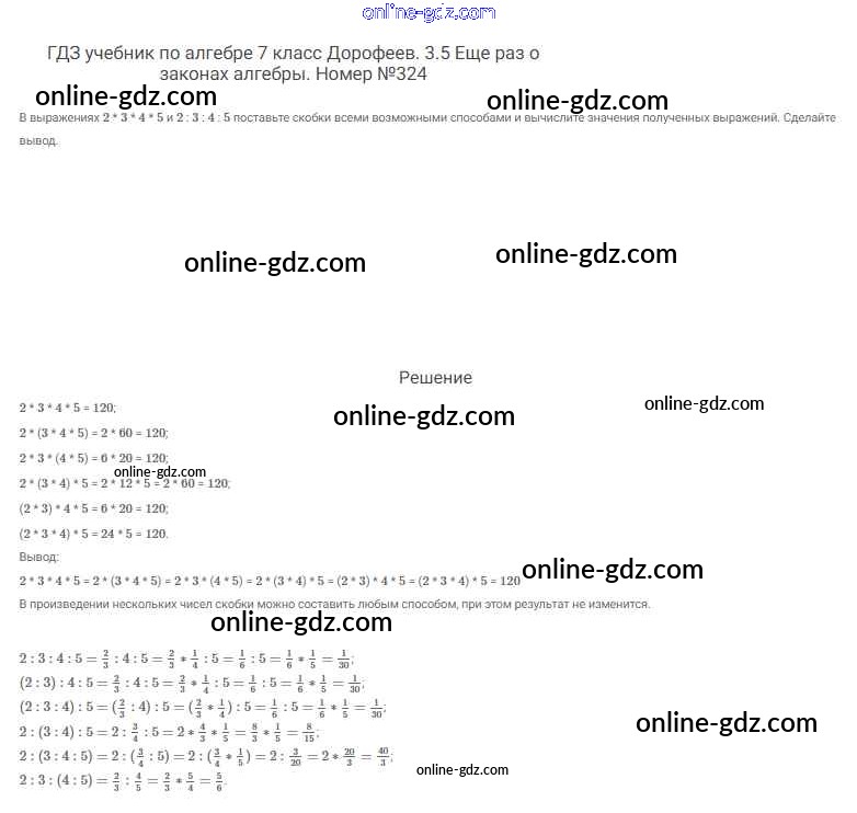 Готовые домашние задания по Алгебре за 7 класс Учебник Дорофеев, Суворова Академический школьный учебник 2020 - Упражнения 324
