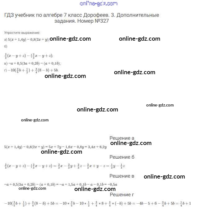 Готовые домашние задания по Алгебре за 7 класс Учебник Дорофеев, Суворова Академический школьный учебник 2020 - Упражнения 327