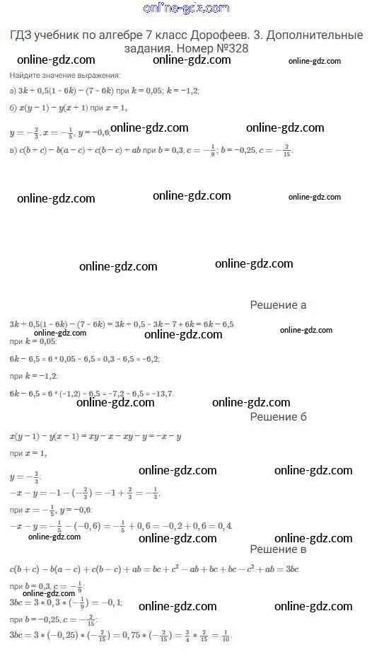 Готовые домашние задания по Алгебре за 7 класс Учебник Дорофеев, Суворова Академический школьный учебник 2020 - Упражнения 328