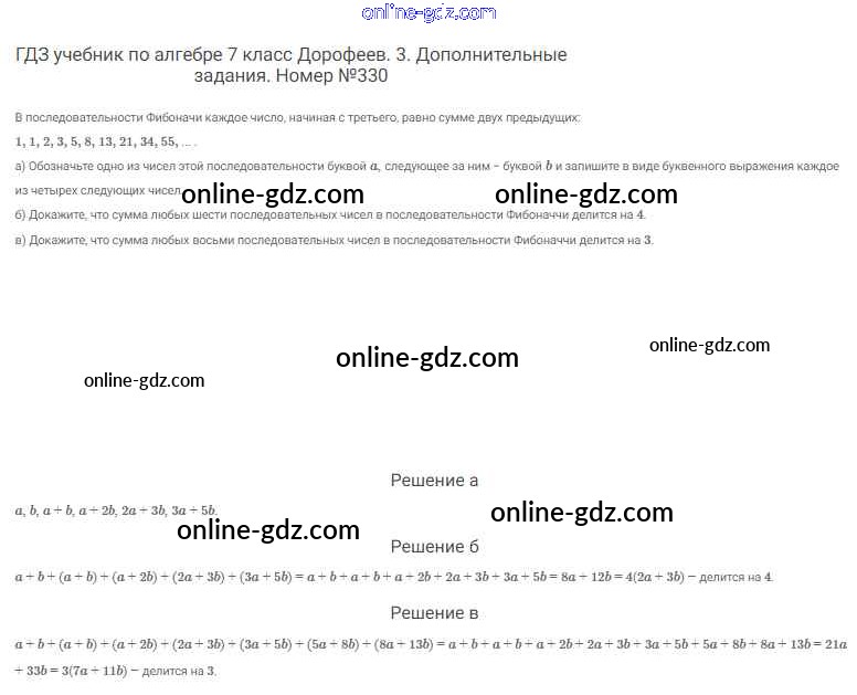 Готовые домашние задания по Алгебре за 7 класс Учебник Дорофеев, Суворова Академический школьный учебник 2020 - Упражнения 330