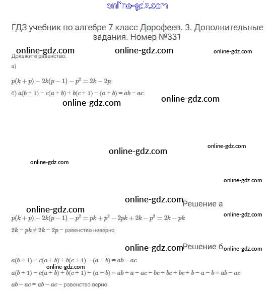 Готовые домашние задания по Алгебре за 7 класс Учебник Дорофеев, Суворова Академический школьный учебник 2020 - Упражнения 331