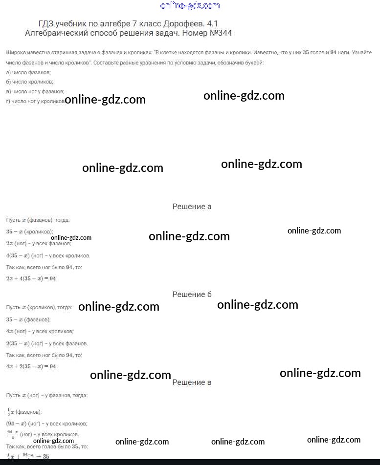 Готовые домашние задания по Алгебре за 7 класс Учебник Дорофеев, Суворова Академический школьный учебник 2020 - Упражнения 344