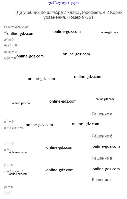 Готовые домашние задания по Алгебре за 7 класс Учебник Дорофеев, Суворова Академический школьный учебник 2020 - Упражнения 351