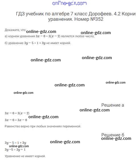 Готовые домашние задания по Алгебре за 7 класс Учебник Дорофеев, Суворова Академический школьный учебник 2020 - Упражнения 352
