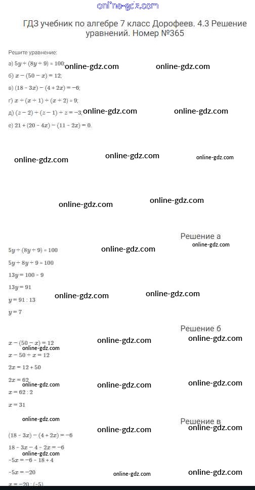 Готовые домашние задания по Алгебре за 7 класс Учебник Дорофеев, Суворова Академический школьный учебник 2020 - Упражнения 365