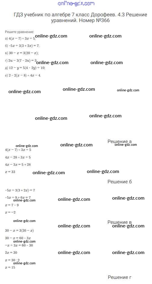 Готовые домашние задания по Алгебре за 7 класс Учебник Дорофеев, Суворова Академический школьный учебник 2020 - Упражнения 366