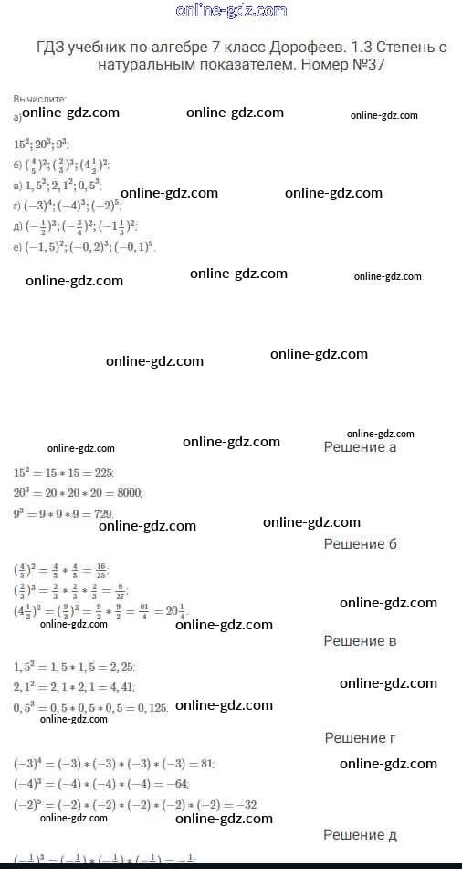 Готовые домашние задания по Алгебре за 7 класс Учебник Дорофеев, Суворова Академический школьный учебник 2020 - Упражнения 37