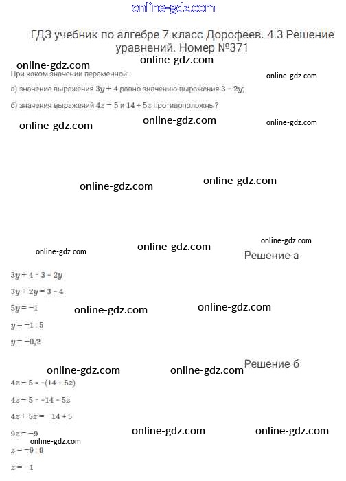 Готовые домашние задания по Алгебре за 7 класс Учебник Дорофеев, Суворова Академический школьный учебник 2020 - Упражнения 371