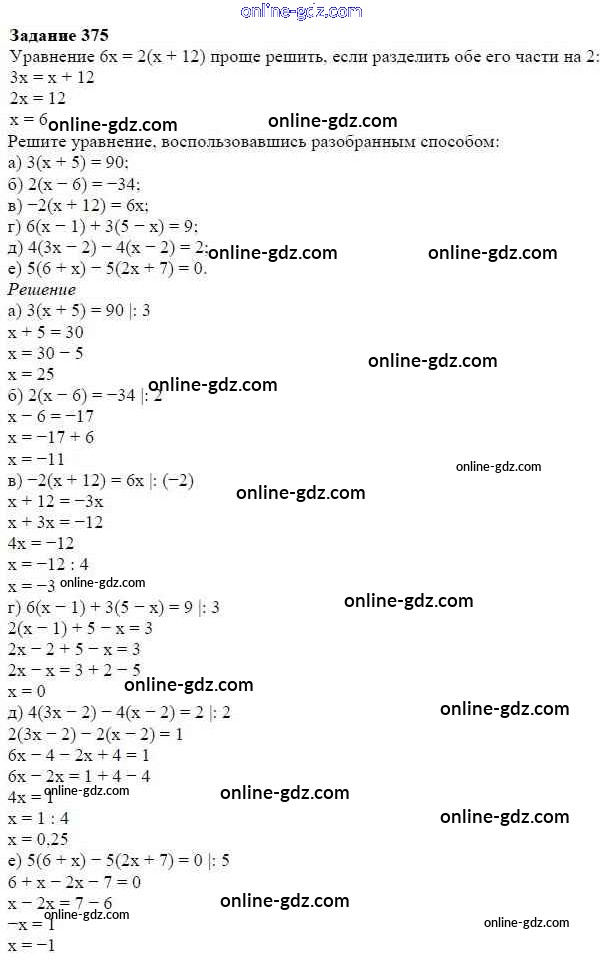 Готовые домашние задания по Алгебре за 7 класс Учебник Дорофеев, Суворова Академический школьный учебник 2020 - Упражнения 375