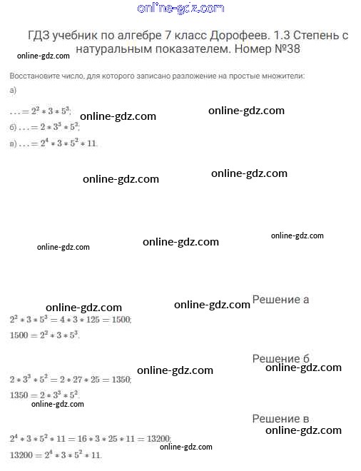 Готовые домашние задания по Алгебре за 7 класс Учебник Дорофеев, Суворова Академический школьный учебник 2020 - Упражнения 38