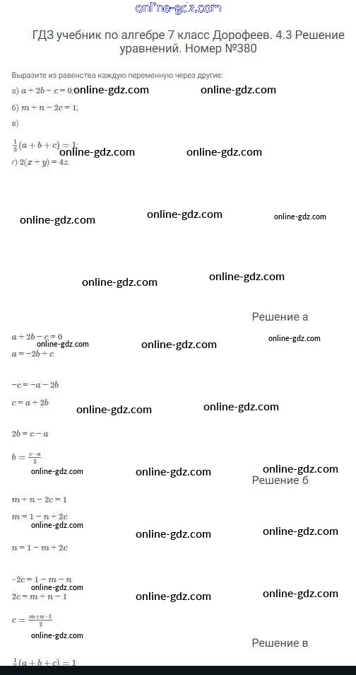 Готовые домашние задания по Алгебре за 7 класс Учебник Дорофеев, Суворова Академический школьный учебник 2020 - Упражнения 380