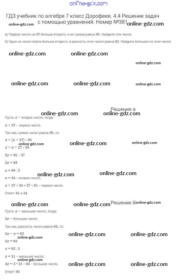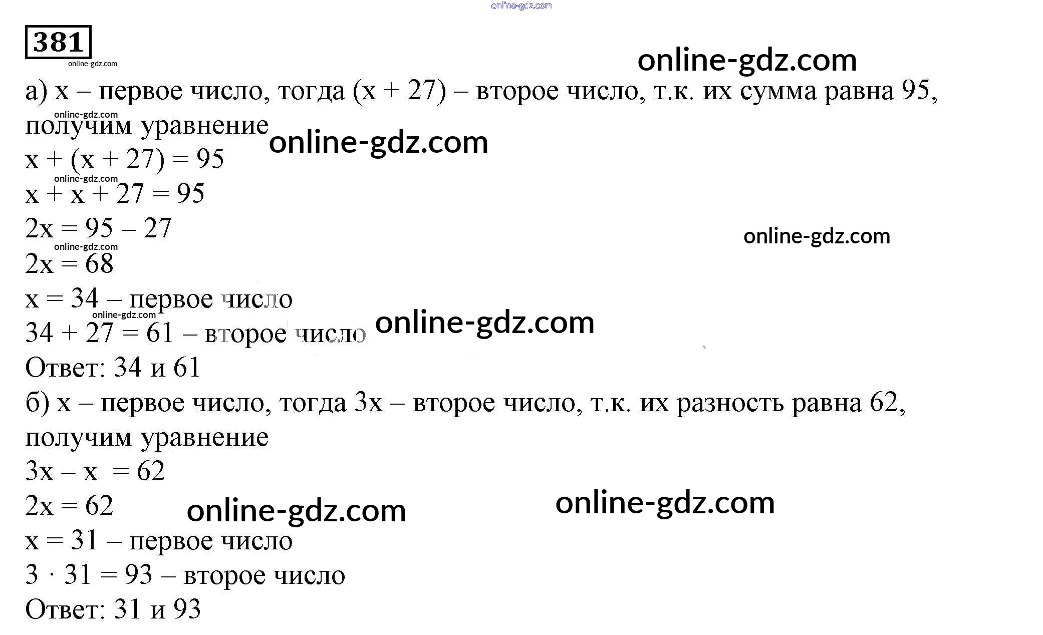 Готовые домашние задания по Алгебре за 7 класс Учебник Дорофеев, Суворова Академический школьный учебник 2020 - Упражнения 381
