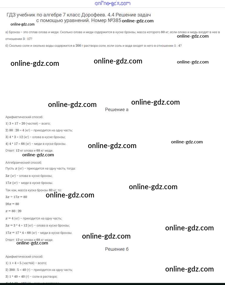 Готовые домашние задания по Алгебре за 7 класс Учебник Дорофеев, Суворова Академический школьный учебник 2020 - Упражнения 385