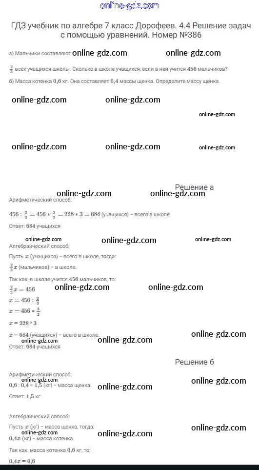Готовые домашние задания по Алгебре за 7 класс Учебник Дорофеев, Суворова Академический школьный учебник 2020 - Упражнения 386