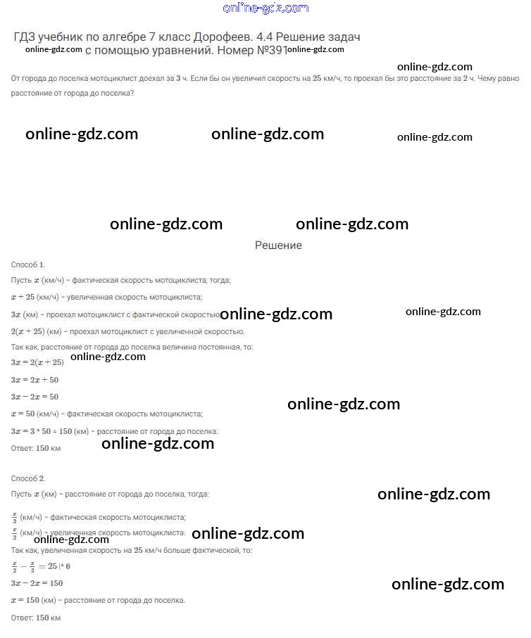 Готовые домашние задания по Алгебре за 7 класс Учебник Дорофеев, Суворова Академический школьный учебник 2020 - Упражнения 391