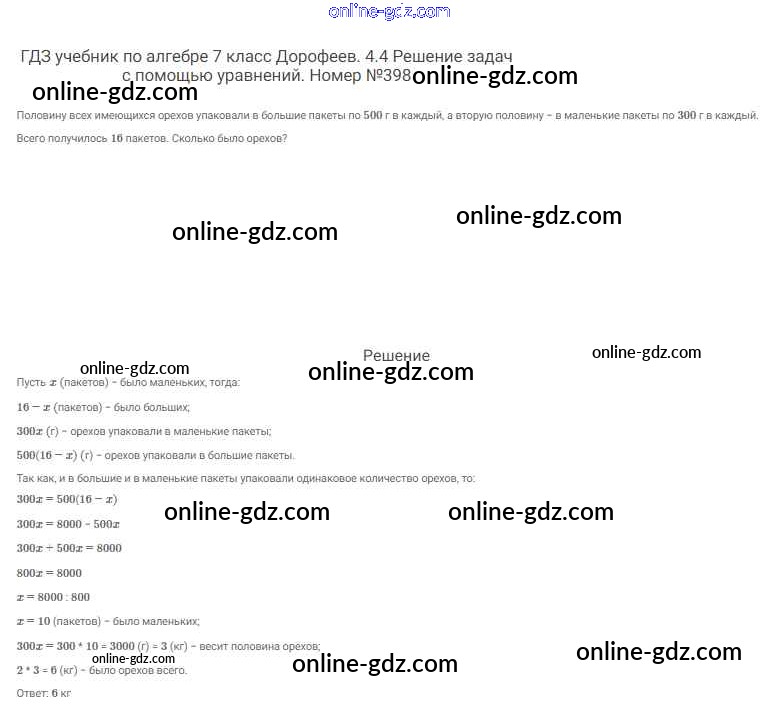 Готовые домашние задания по Алгебре за 7 класс Учебник Дорофеев, Суворова Академический школьный учебник 2020 - Упражнения 398