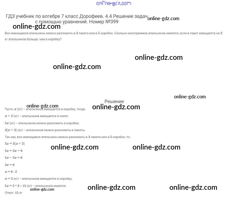 Готовые домашние задания по Алгебре за 7 класс Учебник Дорофеев, Суворова Академический школьный учебник 2020 - Упражнения 399
