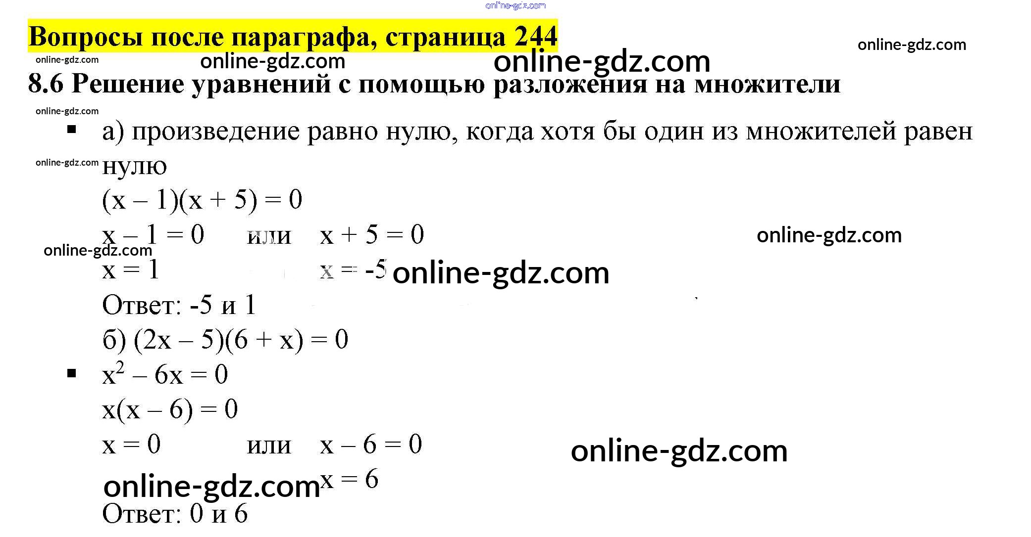 Готовые домашние задания по Алгебре за 7 класс Учебник Дорофеев, Суворова Академический школьный учебник 2020 - Вопросы после параграфа Упражнения Глава 8