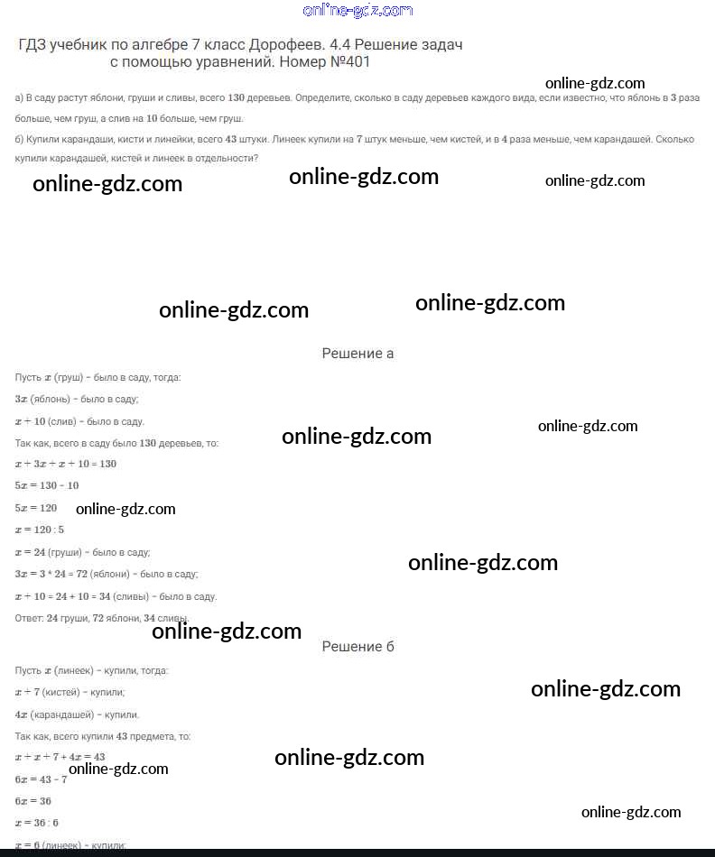 Готовые домашние задания по Алгебре за 7 класс Учебник Дорофеев, Суворова Академический школьный учебник 2020 - Упражнения 401