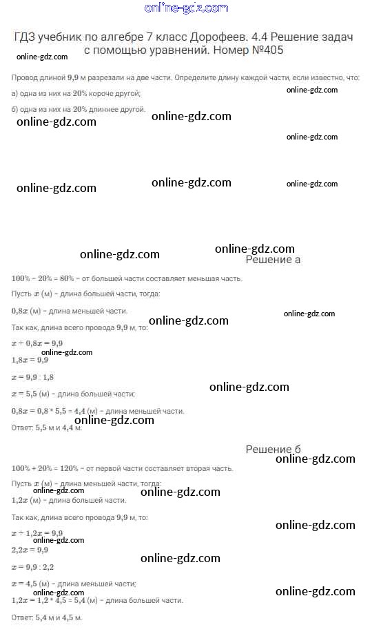 Готовые домашние задания по Алгебре за 7 класс Учебник Дорофеев, Суворова Академический школьный учебник 2020 - Упражнения 405