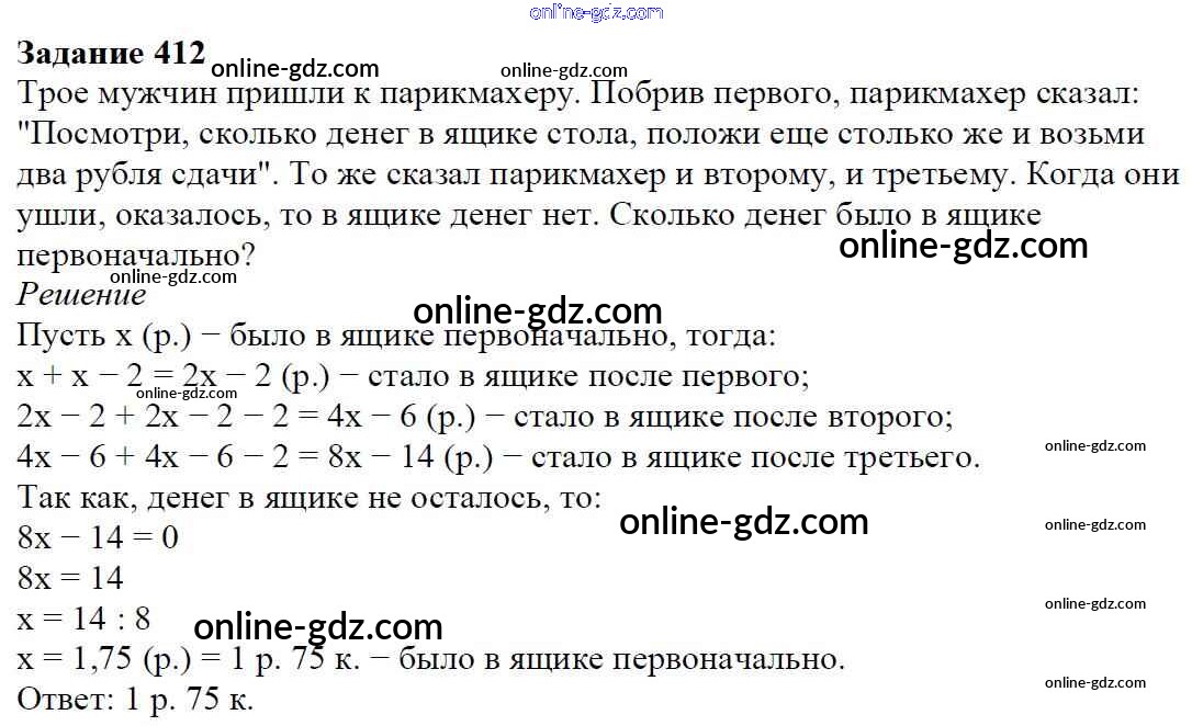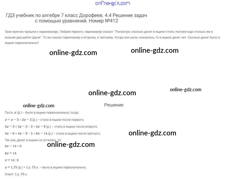 Готовые домашние задания по Алгебре за 7 класс Учебник Дорофеев, Суворова Академический школьный учебник 2020 - Упражнения 412