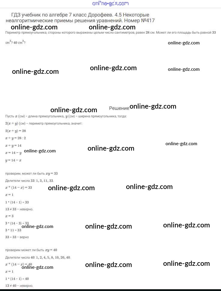 Готовые домашние задания по Алгебре за 7 класс Учебник Дорофеев, Суворова Академический школьный учебник 2020 - Упражнения 417
