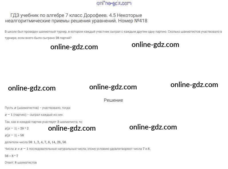 Готовые домашние задания по Алгебре за 7 класс Учебник Дорофеев, Суворова Академический школьный учебник 2020 - Упражнения 418