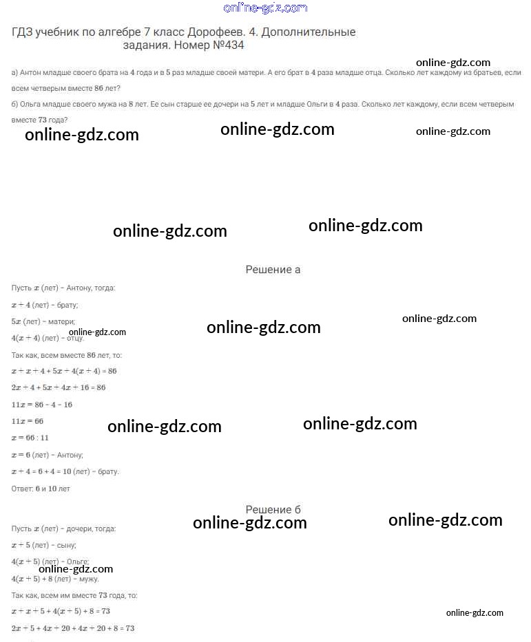 Готовые домашние задания по Алгебре за 7 класс Учебник Дорофеев, Суворова Академический школьный учебник 2020 - Упражнения 434
