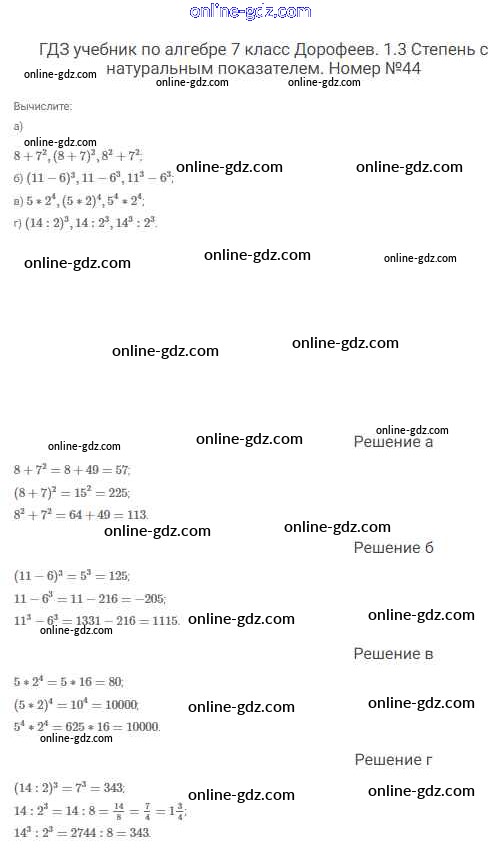 Готовые домашние задания по Алгебре за 7 класс Учебник Дорофеев, Суворова Академический школьный учебник 2020 - Упражнения 44