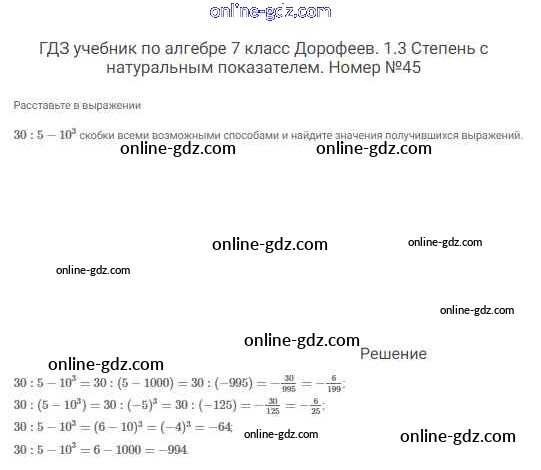 Готовые домашние задания по Алгебре за 7 класс Учебник Дорофеев, Суворова Академический школьный учебник 2020 - Упражнения 45