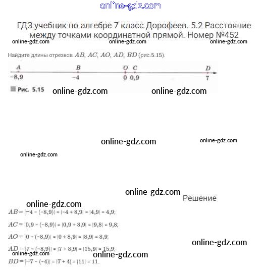 Готовые домашние задания по Алгебре за 7 класс Учебник Дорофеев, Суворова Академический школьный учебник 2020 - Упражнения 452