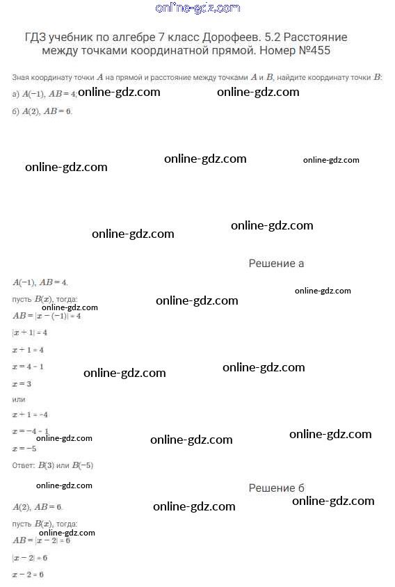 Готовые домашние задания по Алгебре за 7 класс Учебник Дорофеев, Суворова Академический школьный учебник 2020 - Упражнения 455