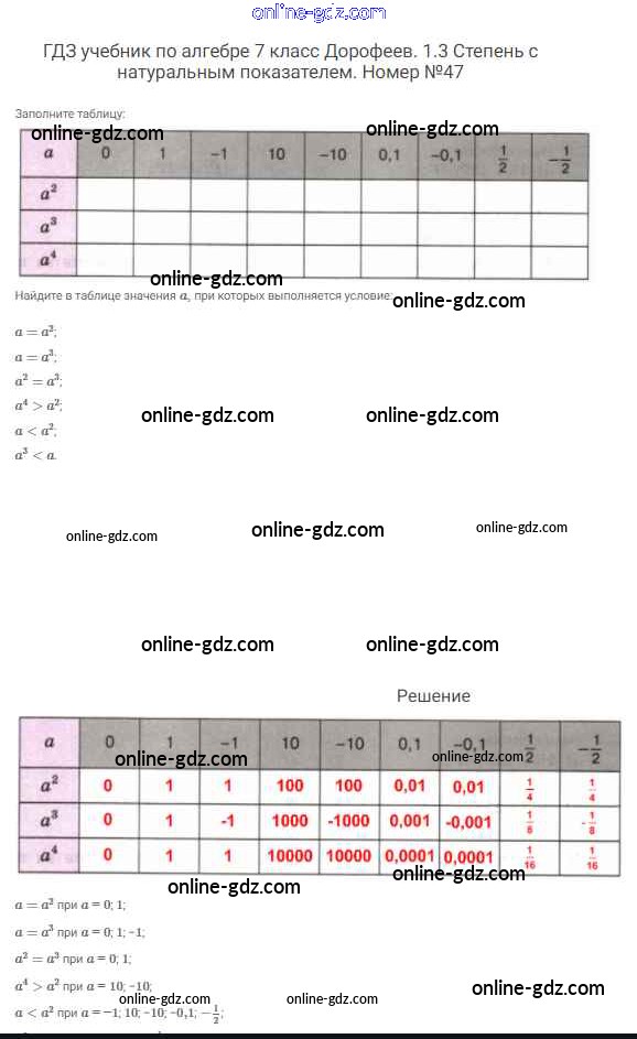 Готовые домашние задания по Алгебре за 7 класс Учебник Дорофеев, Суворова Академический школьный учебник 2020 - Упражнения 47