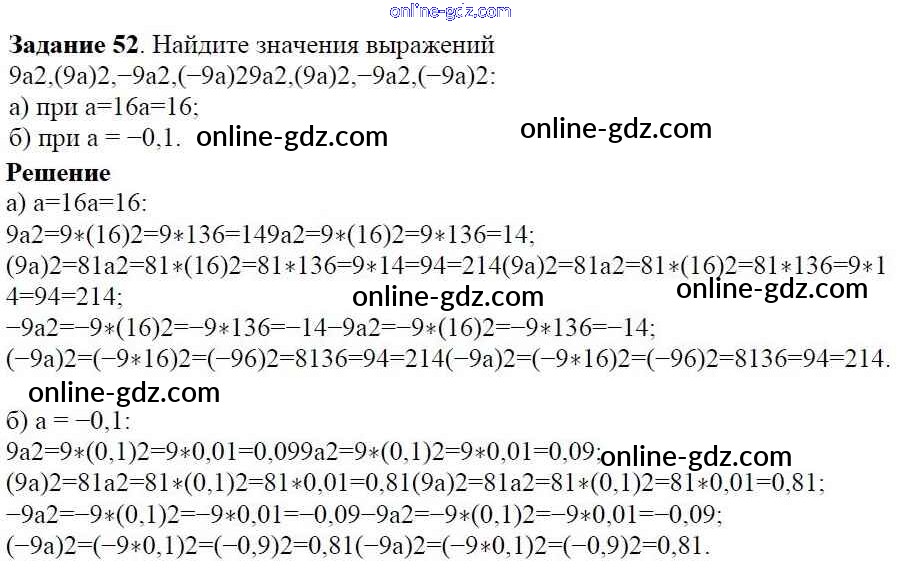 Готовые домашние задания по Алгебре за 7 класс Учебник Дорофеев, Суворова Академический школьный учебник 2020 - Упражнения 52