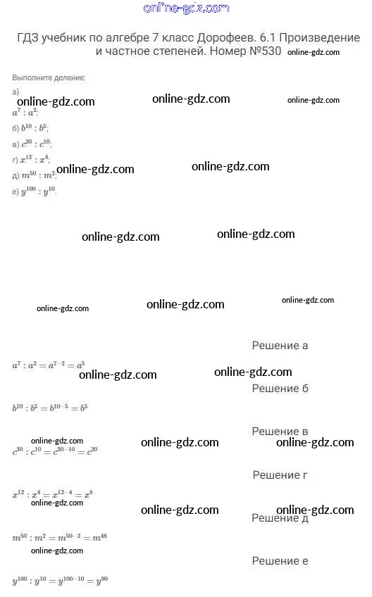 Готовые домашние задания по Алгебре за 7 класс Учебник Дорофеев, Суворова Академический школьный учебник 2020 - Упражнения 530