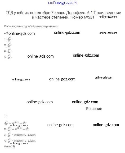 Готовые домашние задания по Алгебре за 7 класс Учебник Дорофеев, Суворова Академический школьный учебник 2020 - Упражнения 531