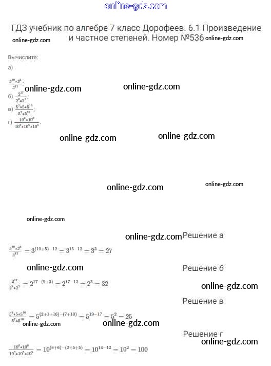 Готовые домашние задания по Алгебре за 7 класс Учебник Дорофеев, Суворова Академический школьный учебник 2020 - Упражнения 536