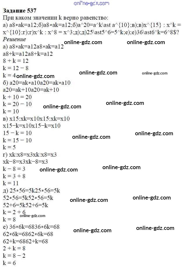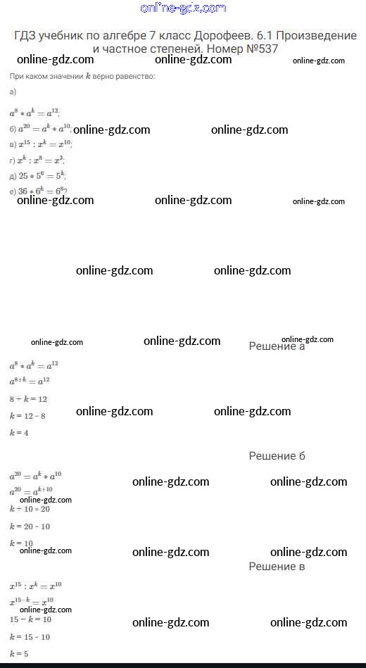 Готовые домашние задания по Алгебре за 7 класс Учебник Дорофеев, Суворова Академический школьный учебник 2020 - Упражнения 537