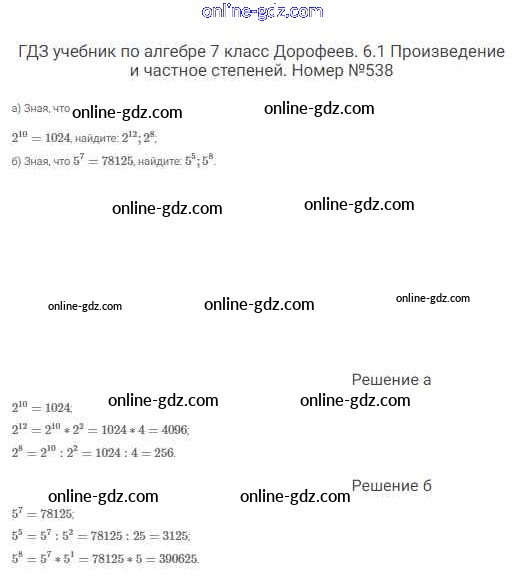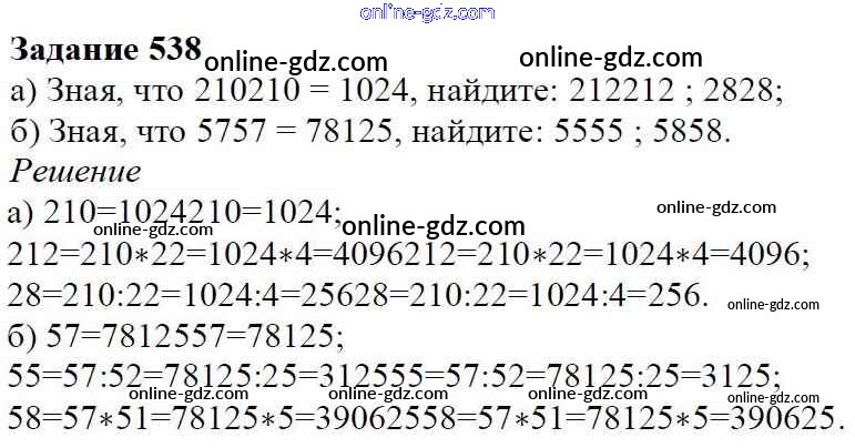 Готовые домашние задания по Алгебре за 7 класс Учебник Дорофеев, Суворова Академический школьный учебник 2020 - Упражнения 538