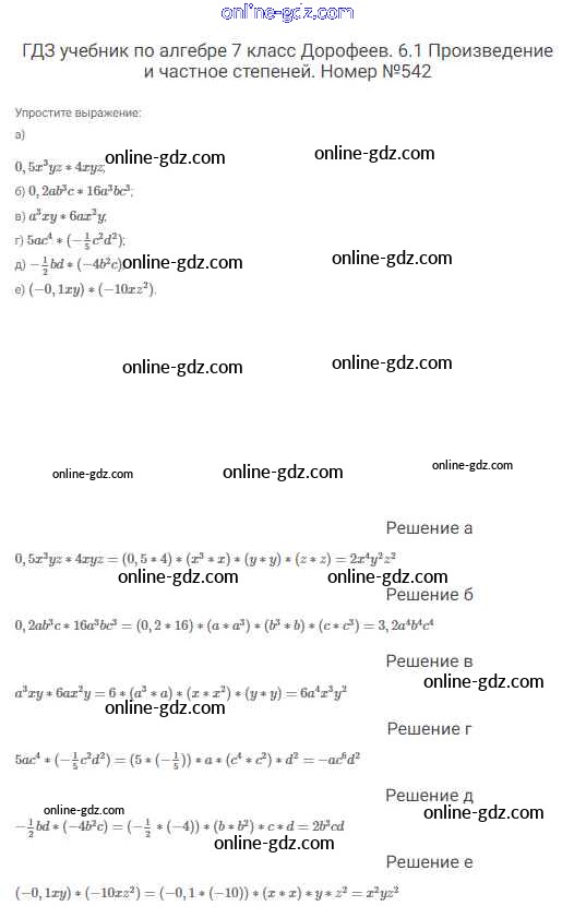Готовые домашние задания по Алгебре за 7 класс Учебник Дорофеев, Суворова Академический школьный учебник 2020 - Упражнения 542