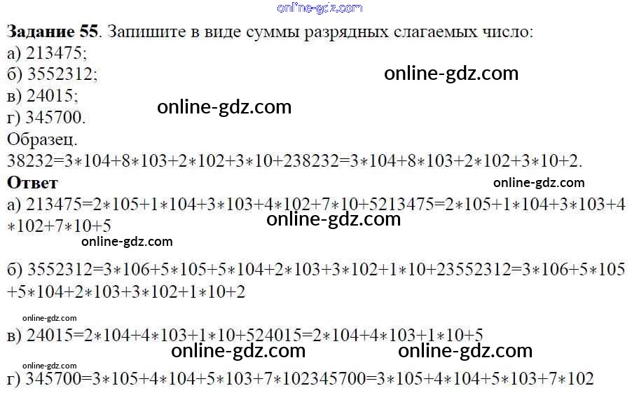 Готовые домашние задания по Алгебре за 7 класс Учебник Дорофеев, Суворова Академический школьный учебник 2020 - Упражнения 55
