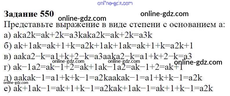 Готовые домашние задания по Алгебре за 7 класс Учебник Дорофеев, Суворова Академический школьный учебник 2020 - Упражнения 550