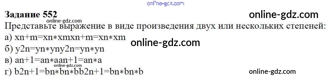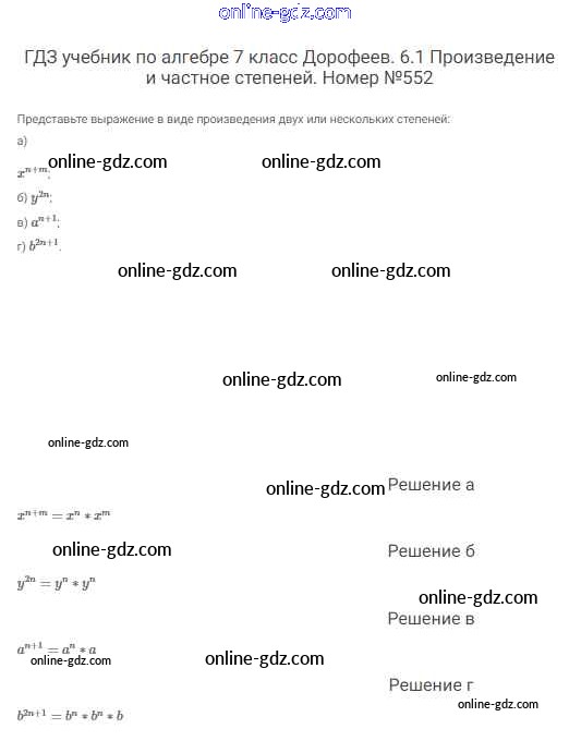 Готовые домашние задания по Алгебре за 7 класс Учебник Дорофеев, Суворова Академический школьный учебник 2020 - Упражнения 552
