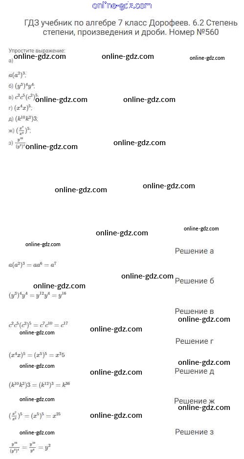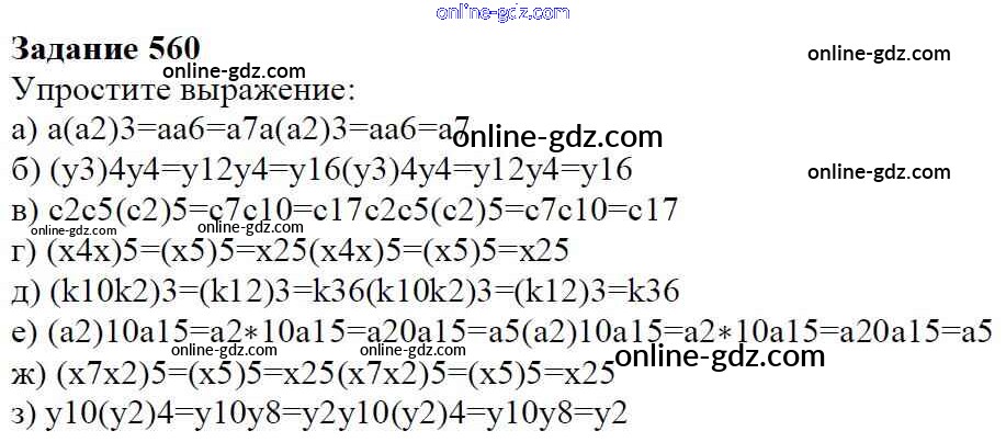 Готовые домашние задания по Алгебре за 7 класс Учебник Дорофеев, Суворова Академический школьный учебник 2020 - Упражнения 560