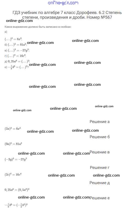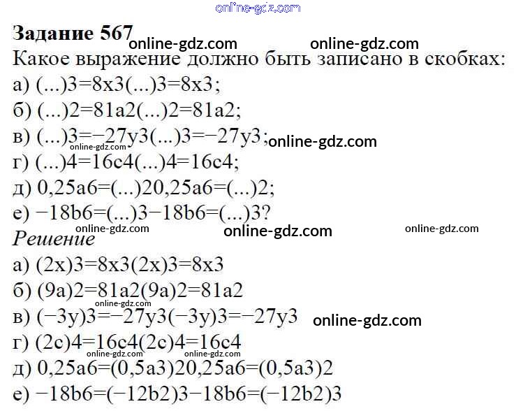 Готовые домашние задания по Алгебре за 7 класс Учебник Дорофеев, Суворова Академический школьный учебник 2020 - Упражнения 567